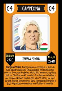 La versión Caissa cards 2.0 de 40 cartas/pack esta formada integramente por mujeres relacionas de una forma u otra con el ajedrez y con sus propias cartas especiales que se complementan con las versión CLASSIC!!.